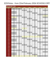 ECB Rotas (Schools OFF) – from 22 February 2026