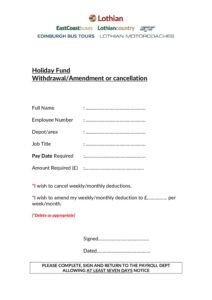 Holiday Withdrawal/Amendment or Cancellation Form